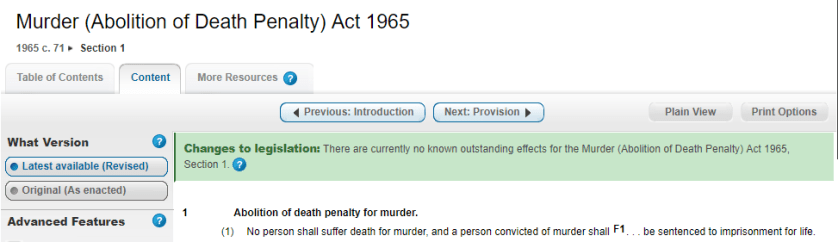Eventually, the Murder (Abolition of Death Penalty) Act 1965 came along and did what it said on the tin: